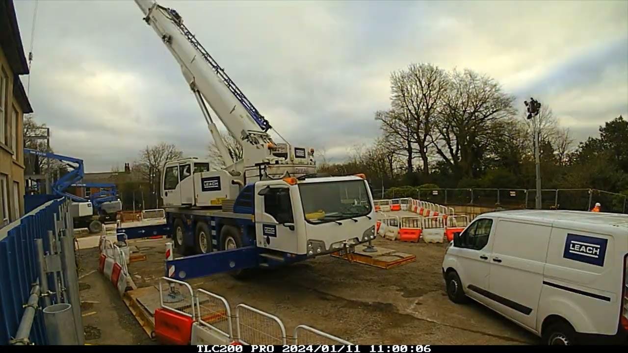 The timelapse of the steel frame being placed into position.